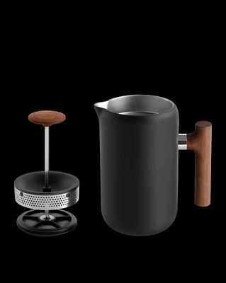 Materials:Â Stainless steel body and filter, BPA-free plastic lid and handle, non-stick PTFE-coated interior (PFOA-free), optional walnut wooden press and handle